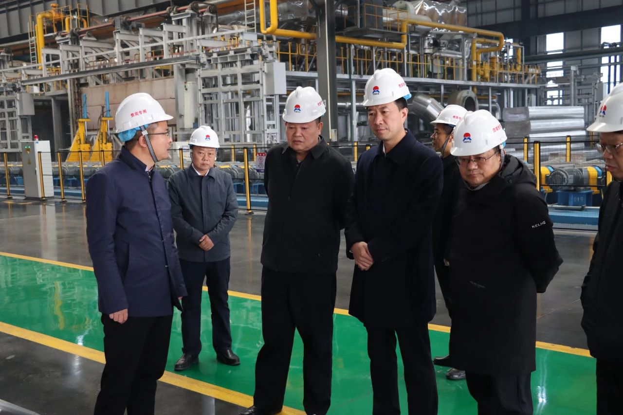 蒿鐵群副主任一行聽取相關匯報后,充分肯定了義瑞新材項目在全市經濟發展中的積極作用,并對公司在智能化發展和堅持綠色低碳轉型等方面所取得的成績給予高度評價。隨后,調研組一行走進生產車間,實地查看了1+4熱連軋生產線和冷軋生產車間的生產運行情況,并對生產工藝、設備能力進行詳細了解。